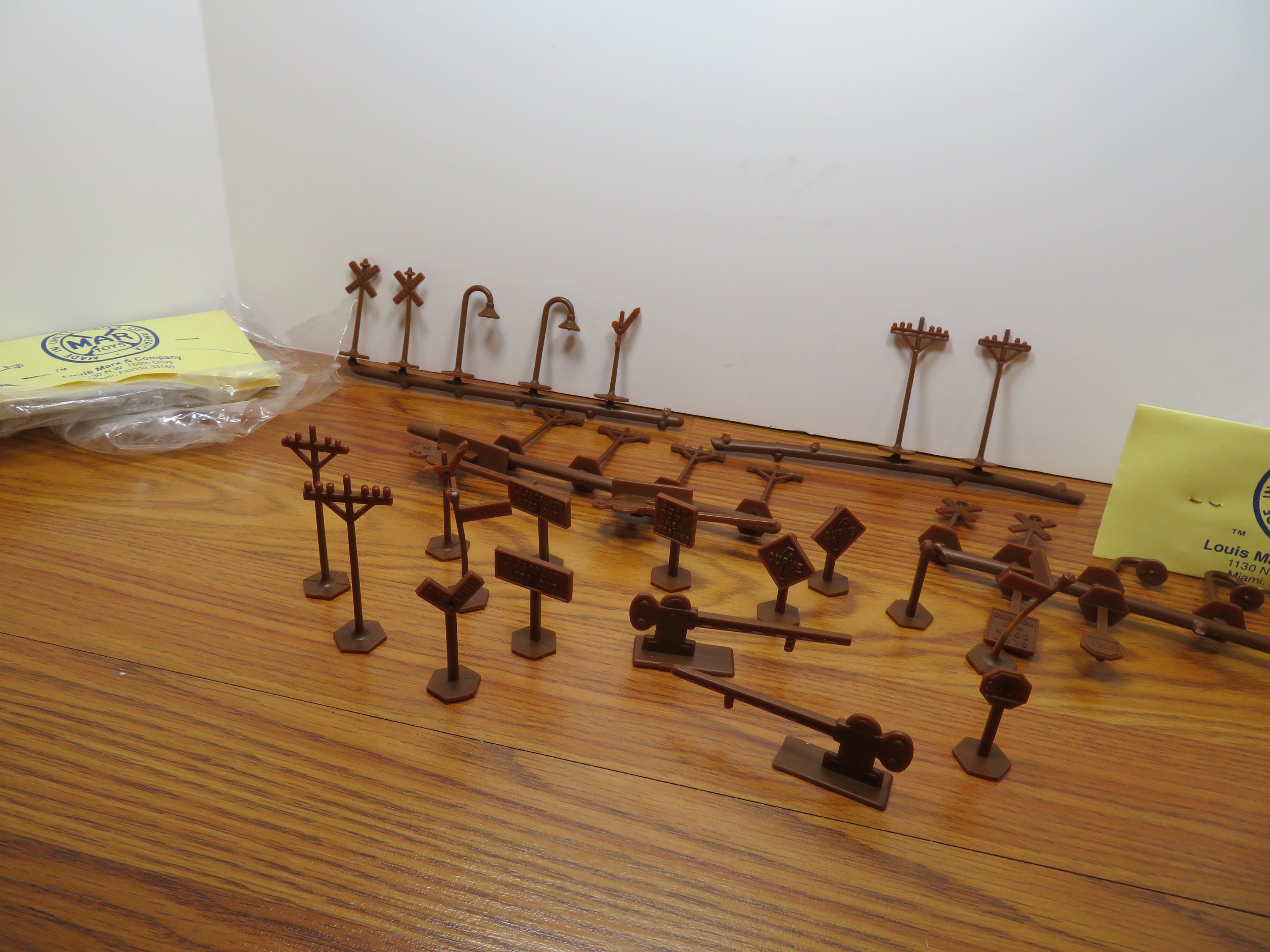 HO Louis Marx Vintage Signs, Lights, Telephone Poles, Crossing Gates (36) Piece Set 1960 New Old Stock